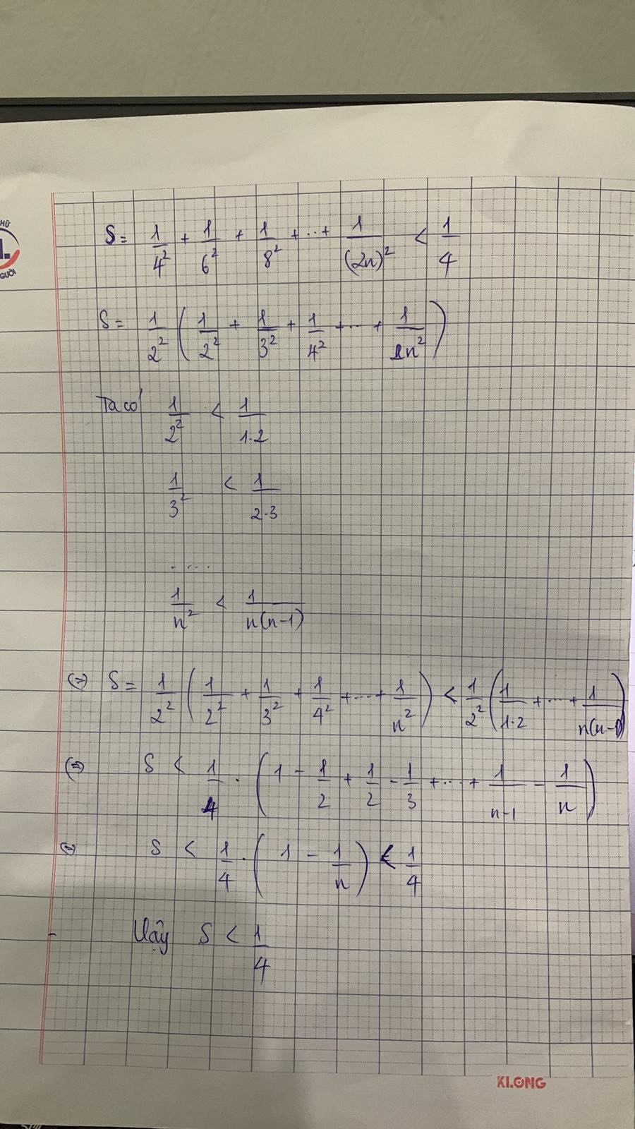 Chứng minh: S = 1/4² + 1/6² + 1/8² +...+ 1/(2n)² < 1/4