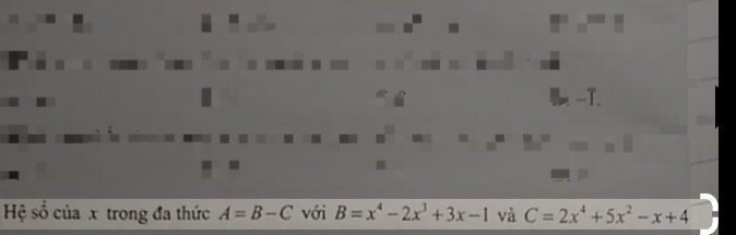 Hệ số của x trong đa thức A = B - C với B = x⁴ - 2x³ + 3x - 1