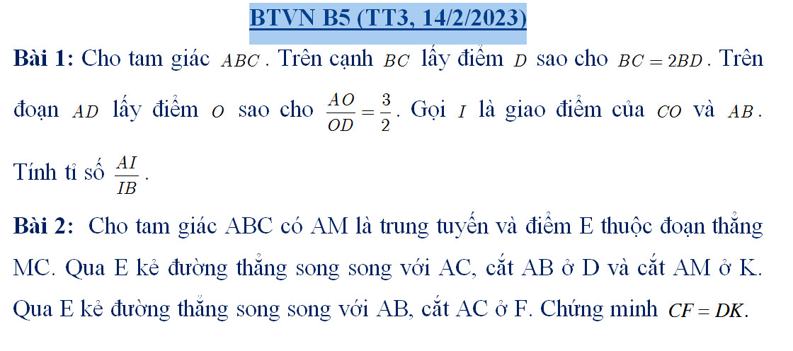 . Trên đoạn AD lấy điểm O sao cho AO/OD= 3/2. I là giao điểm của CO và AB. Tính tỉ số AI/IB