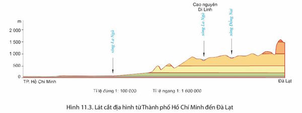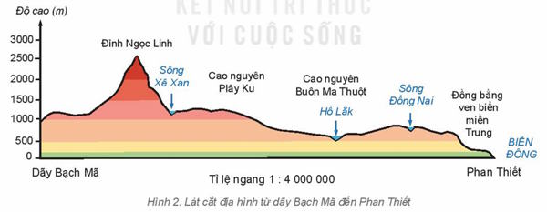 - Lát cắt lần lượt đi qua các dạng địa hình: đồng bằng, cao nguyên, núi.