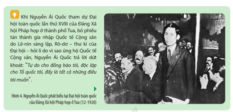 - Tháng 7-1920, Nguyễn Ái Quốc đọc Sơ thảo lần thứ nhất những luận cương về vấn đề dân tộc và vấn đề thuộc địa của Lê-nin đăng trên báo Nhân đạo. Luận cương đã giúp Nguyễn Ái Quốc khẳng định: muốn cứu nước và giải phóng dân tộc, không có con đường nào khác ngoài con đường cách mạng vô sản. Tháng 12-1920, Nguyễn Ái Quốc bỏ phiếu tán thành việc gia nhập Quốc tế Cộng sản và tham gia sáng lập Đảng Cộng sản Pháp.