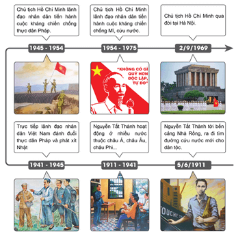 Luyện tập trang 93 Lịch Sử 12: Lập trục thời gian (theo ý tưởng của em) thể hiện những nét chính về tiến trình hoạt động cách mạng của Chủ tịch Hồ Chí Minh.