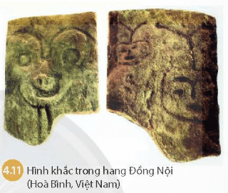 Em hãy quan sát hình 4.11 và cho biết người nguyên thủy đã khắc hình gì trong hang Đồng Nội?