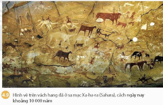 + Trong quá trình săn bắt, người nguyên thủy đã dần phát hiện ra đặc tính của một số loài vật và tìm cách thuần dưỡng chúng. Bức vẽ trên xa mạc Xa-ha-ra thể hiện con người đã thuần hóa được một số loài thú lớn dùng để làm vật cưỡi trong các cuộc săn bắt, di chuyển và chăn nuôi lấy thịt, sữa, da,...