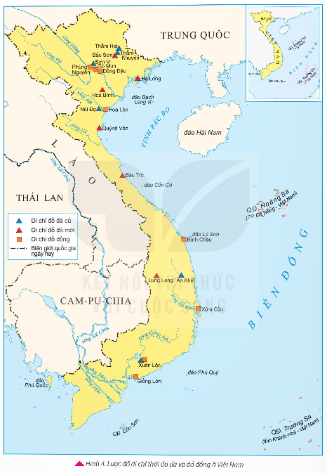 Tìm trên lược đồ hình 4 (tr.22) kết hợp với tra cứu thông tin từ sách, báo và internet, hãy cho biết các di tích thời đồ đá được phân bố ở những tỉnh nào ngày nay và sự phân bố đó nói lên điều gì.