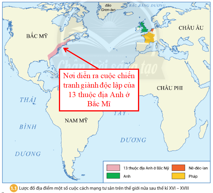 Câu hỏi trang 10 Lịch Sử 8: Xác định trên lược đồ 1.1 địa điểm diễn ra cuộc Chiến tranh giành độc lập của 13 thuộc địa Anh ở Bắc Mỹ