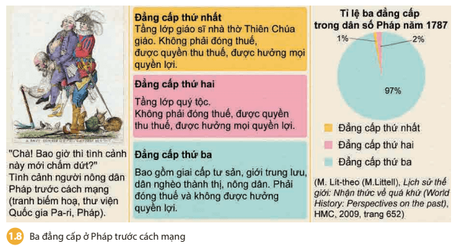 Câu hỏi trang 12 Lịch Sử 8: Dựa vào tư liệu 1.8 và thông tin trong bài, em hãy xác định các nguyên nhân dẫn đến Cách mạng tư sản Pháp. Theo em, Cách mạng tư sản Pháp cần phải giải quyết những vấn đề gì?