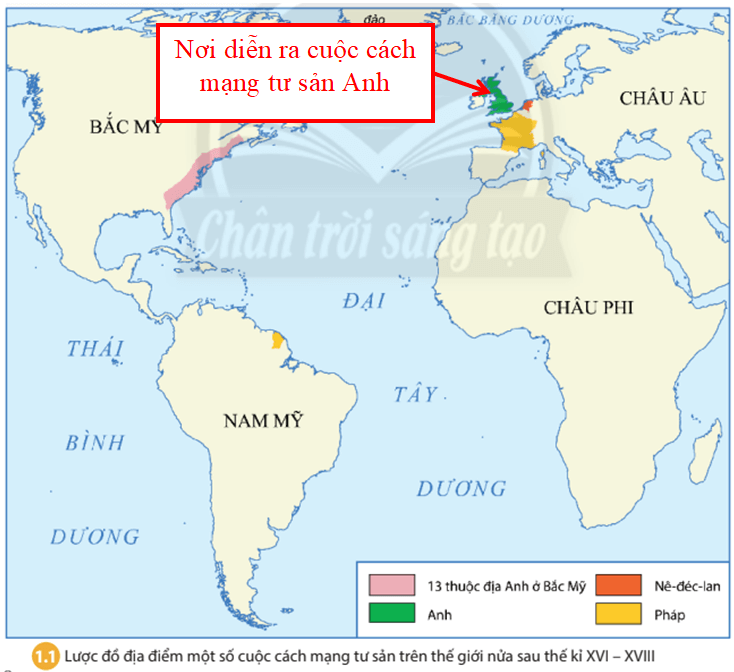 Câu hỏi 1 trang 9 Lịch Sử 8: Xác định trên lược đồ 1.1 địa điểm diễn ra cuộc Cách mạng tư sản Anh.