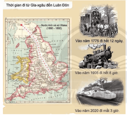 Nhìn vào bức ảnh “Thời gian đi lại từ Gla-xgâu tới Luân Đôn”, các em sẽ thấy sự thay đổi nhanh chóng của phương tiện giao thông từ khi con người sử dụng máy móc. Đó là một minh chứng cho sự tiến bộ của nhân loại nhờ vào những thành quả của cuộc cách mạng công nghiệp thế kỉ XVIII - XIX mang lại. Vậy cuộc cách mạng đó đạt được những thành tựu tiêu biểu nào? Đời sống sản xuất và xã hội đã thay đổi ra sao dưới tác động của nó?