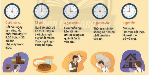 - Lập thời gian biểu của em tương đương với thời gian trong ngày của bé trai trong câu chuyện để thấy rõ hơn tác động của cách mạng công nghiệp lên xã hội đương thời.