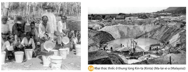 Hình 3.5 và 3.6 cho thấy, trong quá trình đô hộ Đông Nam Á, các nước thực dân phương Tây chú trọng đến các hoạt động: cướp đoạt ruộng đất để lập đồn điền trồng cây công nghiệp và khai thác tài nguyên khoáng sản.