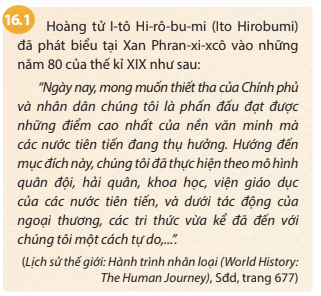 Câu hỏi trang 66 Lịch Sử 8: Dựa vào tư liệu 16.1, em hãy cho biết mục đích của cuộc Duy tân Minh Trị là gì?