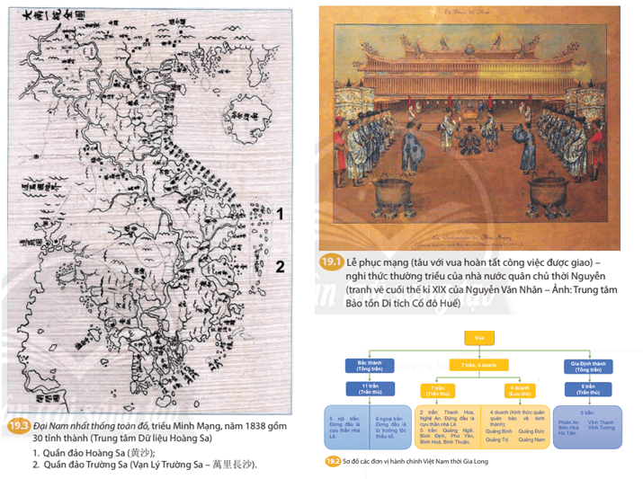 Câu hỏi trang 73 Lịch Sử 8: Dựa vào thông tin trong bài, quan sát tư liệu 19.1, 19.3, sơ đồ 19.2, em hãy trình bày những nét chính về tình hình chính trị của Việt Nam thời nhà Nguyễn và nêu sự khác nhau về cơ cấu hành chính Việt Nam thời Gia Long và Minh Mạng.