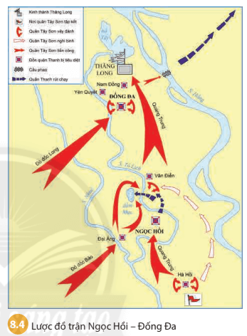 Câu hỏi trang 42 Lịch Sử 8: Dựa vào thông tin trong bài, quan sát lược đồ 8.4, em hãy mô tả lại trận Ngọc Hồi - Đống Đa năm 1789.