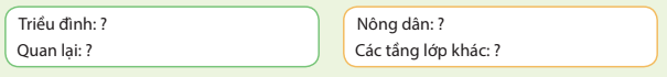 Triều đình: vơ vét nhân dân thông qua các loại thuế. Quan lại: nhũng nhiễu dân chúng. |