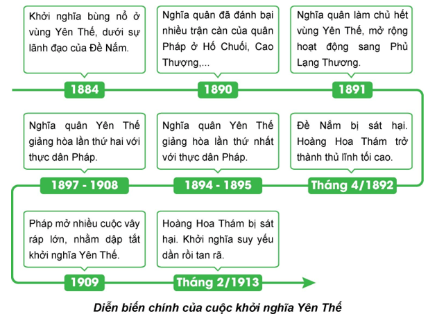 Câu hỏi trang 85 Lịch Sử 8: Hãy thể hiện những diễn biến chính của khởi nghĩa nông dân Yên Thế trên trục thời gian và trình bày trước lớp.