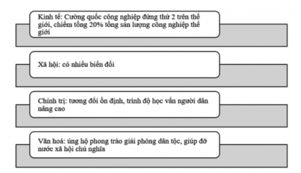 Sản lượng công nghiệp tăng lên gấp hàng chục lần, nông nghiệp phát triển nhanh chóng, trình độ khoa học – kĩ thuật được nâng lên rõ rệt. |