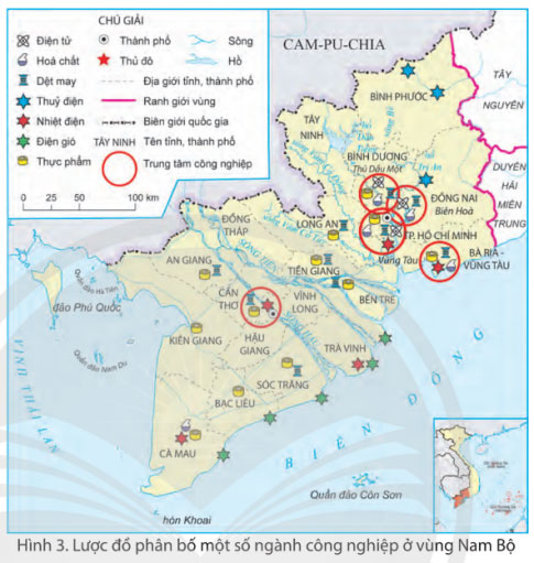 - Kể tên các ngành công nghiệp ở vùng Nam Bộ.