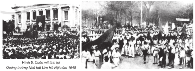 Câu hỏi trang 64 Lịch sử và Địa lí 5: Đọc thông tin và quan sát các hình 5, 6, em hãy kể lại một sự kiện diễn ra trong Cách mạng tháng Tám năm 1945 ở Hà Nội, Huế, Sài Gòn.