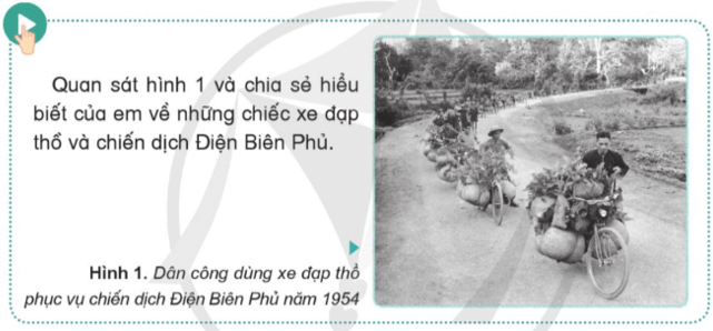 Câu hỏi trang 67 Lịch sử và Địa lí 5: Quan sát hình 1 và chia sẻ hiểu biết của em về những chiếc xe đạp thồ và chiến dịch Điện Biên Phủ.