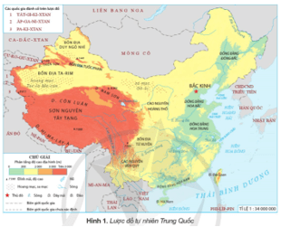 a) Kể tên và chỉ trên hình 1 một số đồng bằng, dãy núi, sơn nguyên, bồn địa, sa mạc, hoang mạc, sông lớn của Trung Quốc.