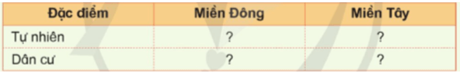 b) Phân biệt đặc điểm tự nhiên và dân cư ở miền Đông và miền Tây Trung Quốc theo bảng gợi ý dưới đây vào vở ghi.