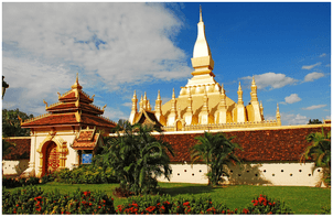 + Đây được xem là biểu tượng của kiến trúc Phật giáo Lào với những mái ngói cong cong và dát vàng rực rỡ.