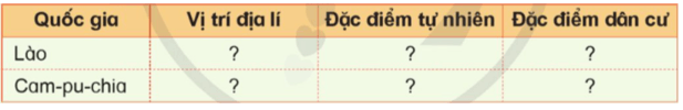 b) Tóm tắt thông tin về Lào và Cam-pu-chia theo bảng gợi ý dưới đây vào vở ghi.