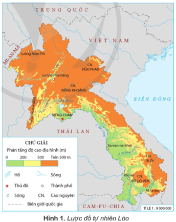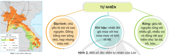 • Quan sát các hình 1, 2, em hãy trình bày một số đặc điểm cơ bản về tự nhiên của Lào.