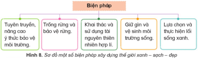 Câu hỏi trang 111 Lịch sử và Địa lí 5: Đọc thông tin và dựa vào hình 8, em hãy nêu một số biện pháp xây dựng thế giới xanh-sạch-đẹp.