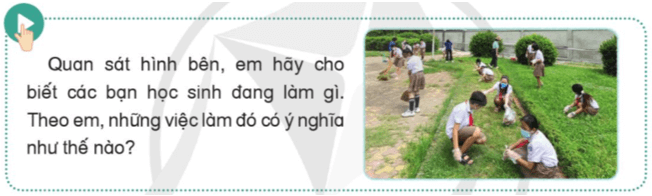 Câu hỏi trang 109 Lịch sử và Địa lí 5: Quan sát hình bên, em hãy cho biết các bạn học sinh đang làm gì. Theo em, những việc làm đó có ý nghĩa như thế nào?