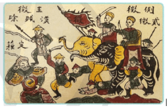 Hình 1. Trưng Vương trừ giặc Hán (tranh dân gian Đông Hồ)