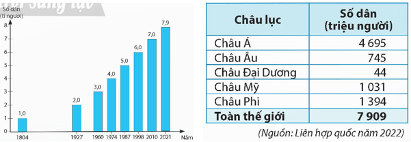 - Các châu lục có sự chênh lệch lớn về số dân khi châu Á chiếm hơn 50% số dân toàn thế giới trong khi châu Âu, châu Phi và châu Âu chỉ bằng ¼ số dân châu Á, thấp hơn hẳn là châu Đại Dương.