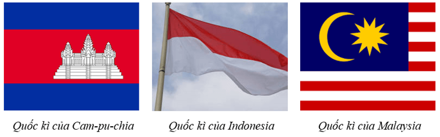 Vận dụng trang 92 Lịch sử và Địa lí lớp 5: Sưu tầm và chia sẻ với bạn về hình ảnh quốc kì của một số quốc gia thành viên ASEAN.