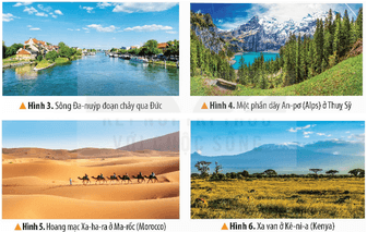 - Một số dãy núi, cao nguyên, đồng bằng lớn của thế giới là: dãy Hi-ma-lay-a ở Nê-pan, dãy An-pơ ở Thụy Sỹ, hoang mạc Xa-ha-ra ở Ma-rốc,...