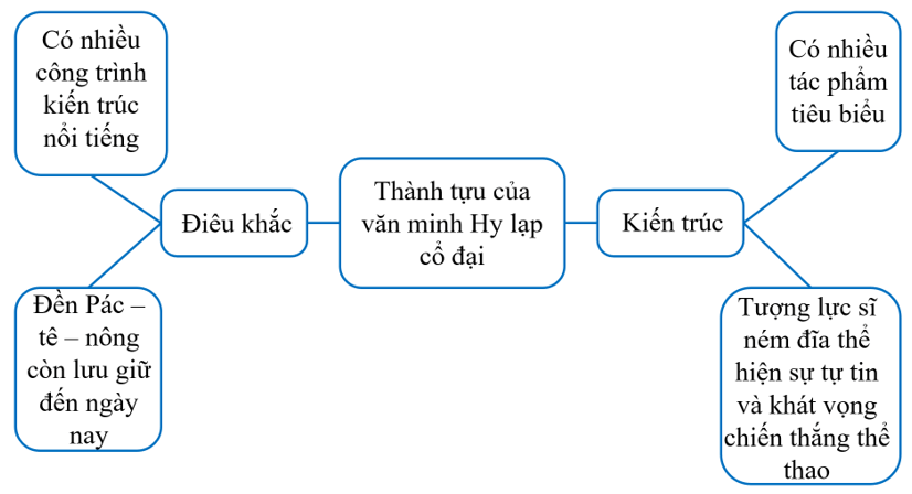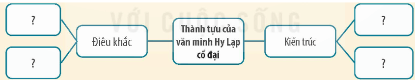 Luyện tập 1 trang 108 Lịch sử và Địa lí lớp 5: Hoàn thành sơ đồ tư duy (theo gợi ý dưới đây vào vở về một số thành tựu văn minh Hy Lạp cổ đại.