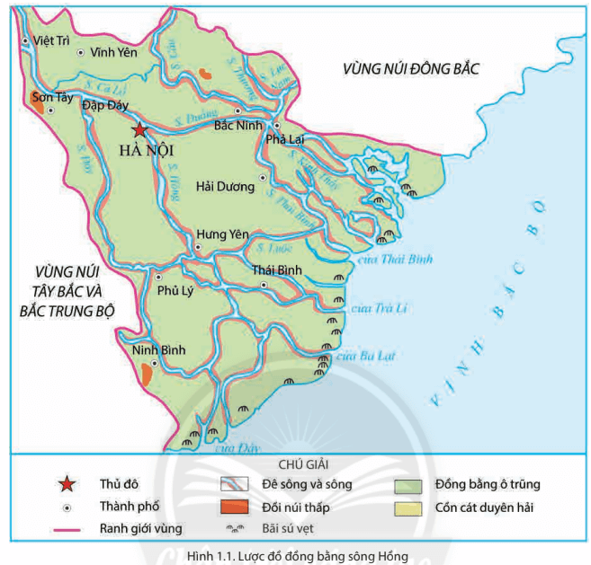 - Ở phía bắc châu thổ sông Hồng có nhiều đồi núi sót, phía nam còn nhiều ô trũng giữa sông Hồng và sông Đáy.