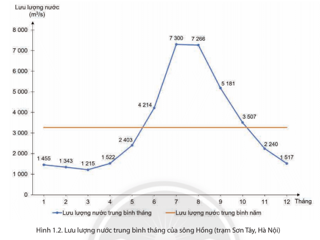 Câu hỏi trang 157 Lịch Sử và Địa Lí 8: Dựa vào hình 1.2 và thông tin trong bài, em hãy mô tả chế độ nước của sông Hồng.