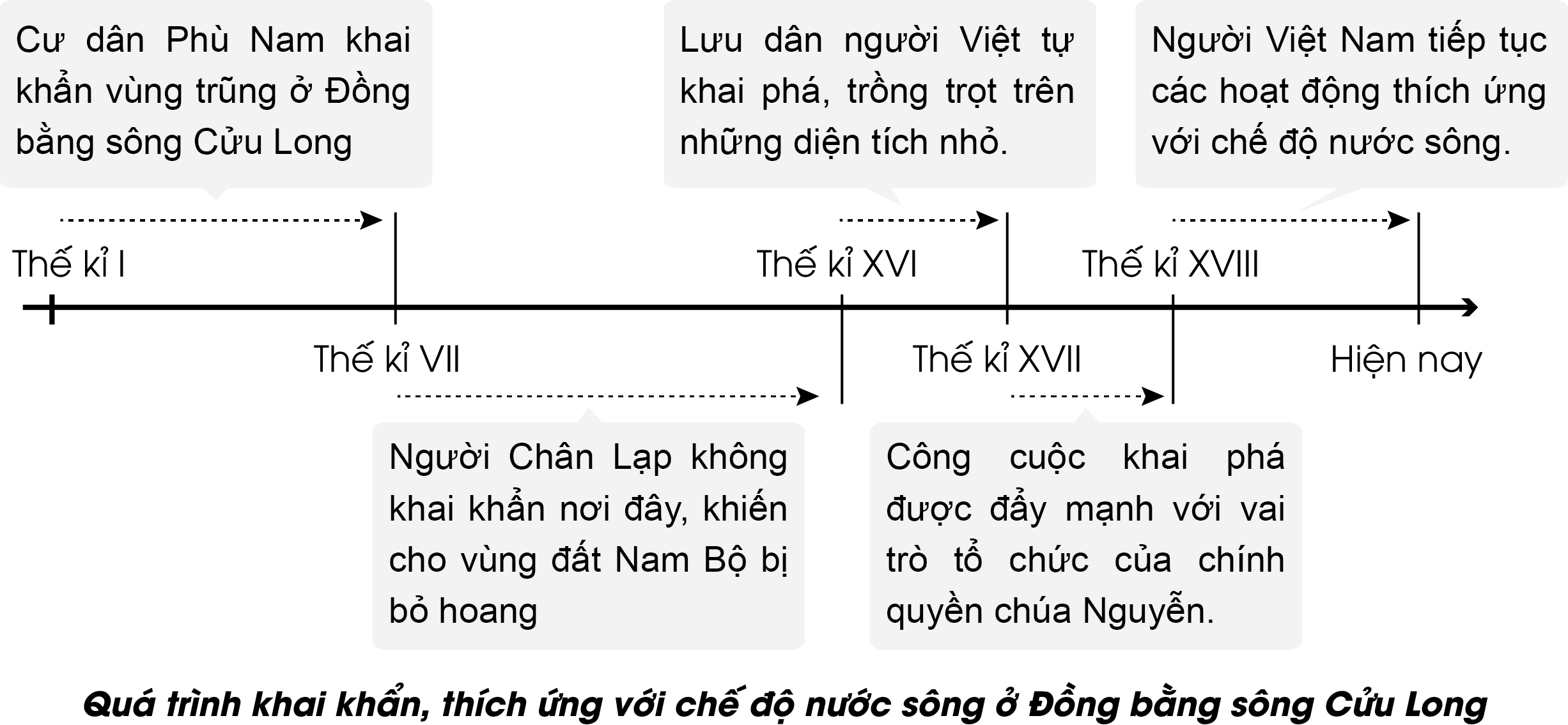 + Việc khai khẩn đồng bằng sông Cửu Long gắn liền với quá trình con người thích ứng với tự nhiên.