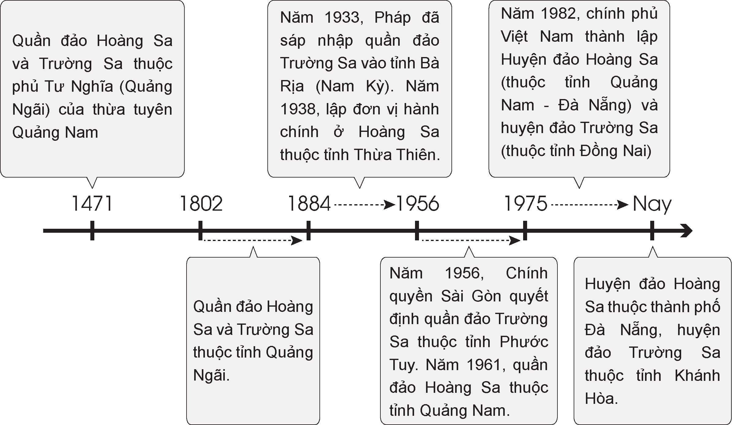 Câu hỏi trang 166 Lịch Sử và Địa Lí 8: Quần đảo Hoàng Sa, quần đảo Trường Sa thuộc đơn vị hành chính nào của Nhà nước Việt Nam qua các giai đoạn lịch sử?
