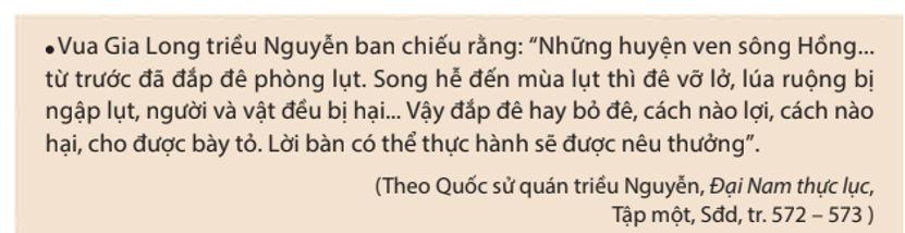 Câu hỏi 1 trang 162 Lịch Sử và Địa Lí 8: Khai thác tư liệu trên giúp em biết được điều gì về vấn đề đê điều dưới triều Nguyễn?