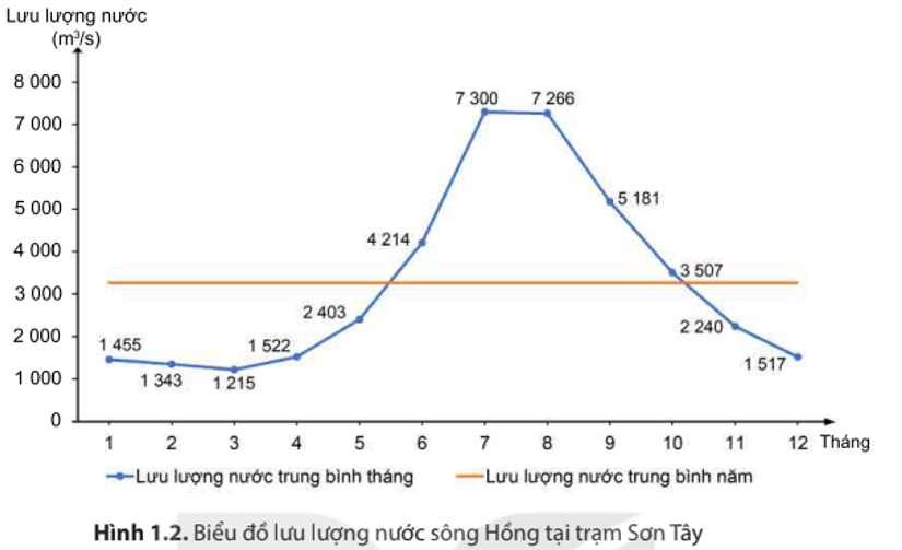 Câu hỏi trang 159 Lịch Sử và Địa Lí 8: Dựa vào thông tin mục b và hình 1.2, hãy mô tả chế độ nước của sông Hồng.