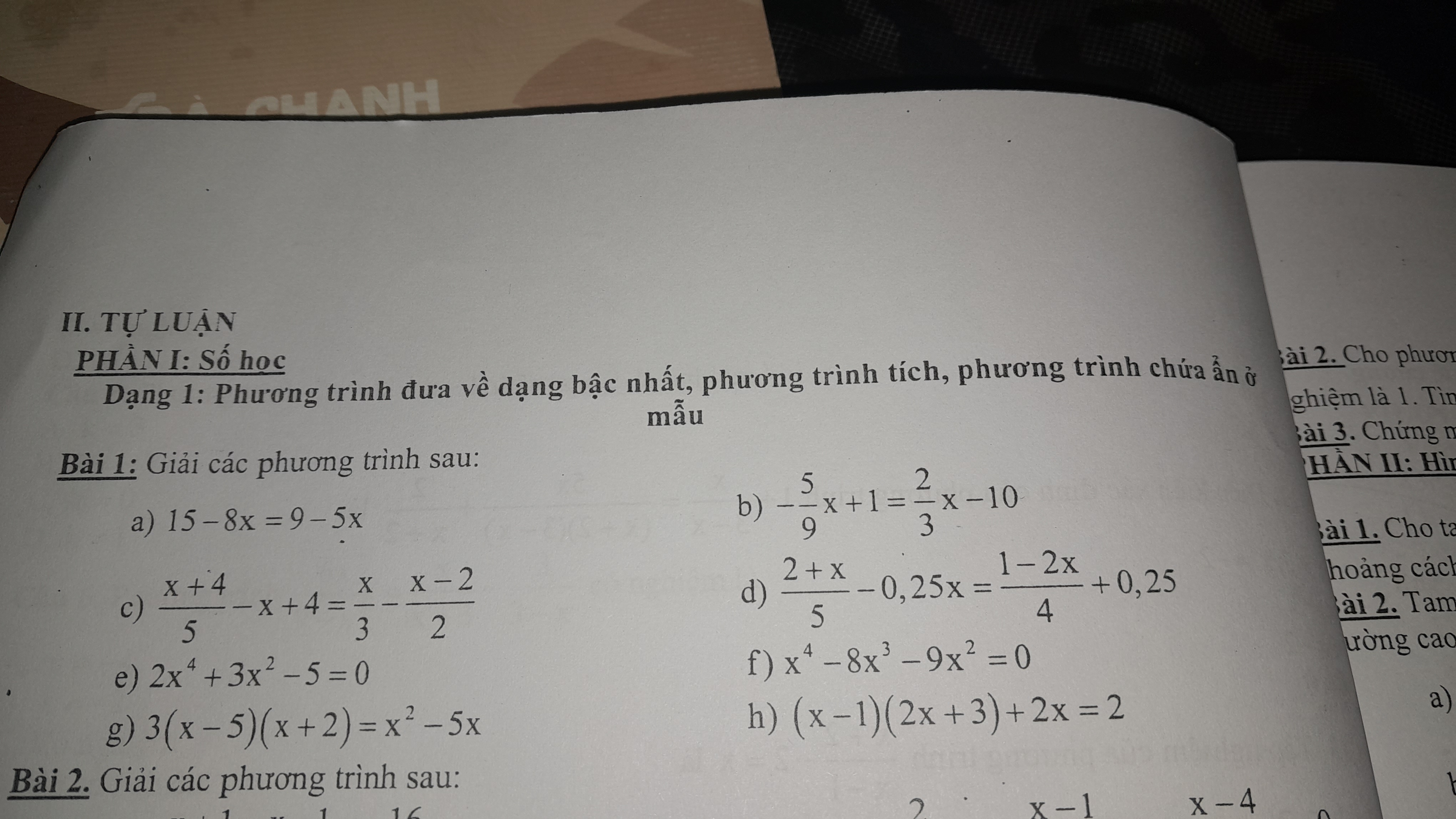 Giải các phương trình sau: 15 - 8x = 9 - 5x