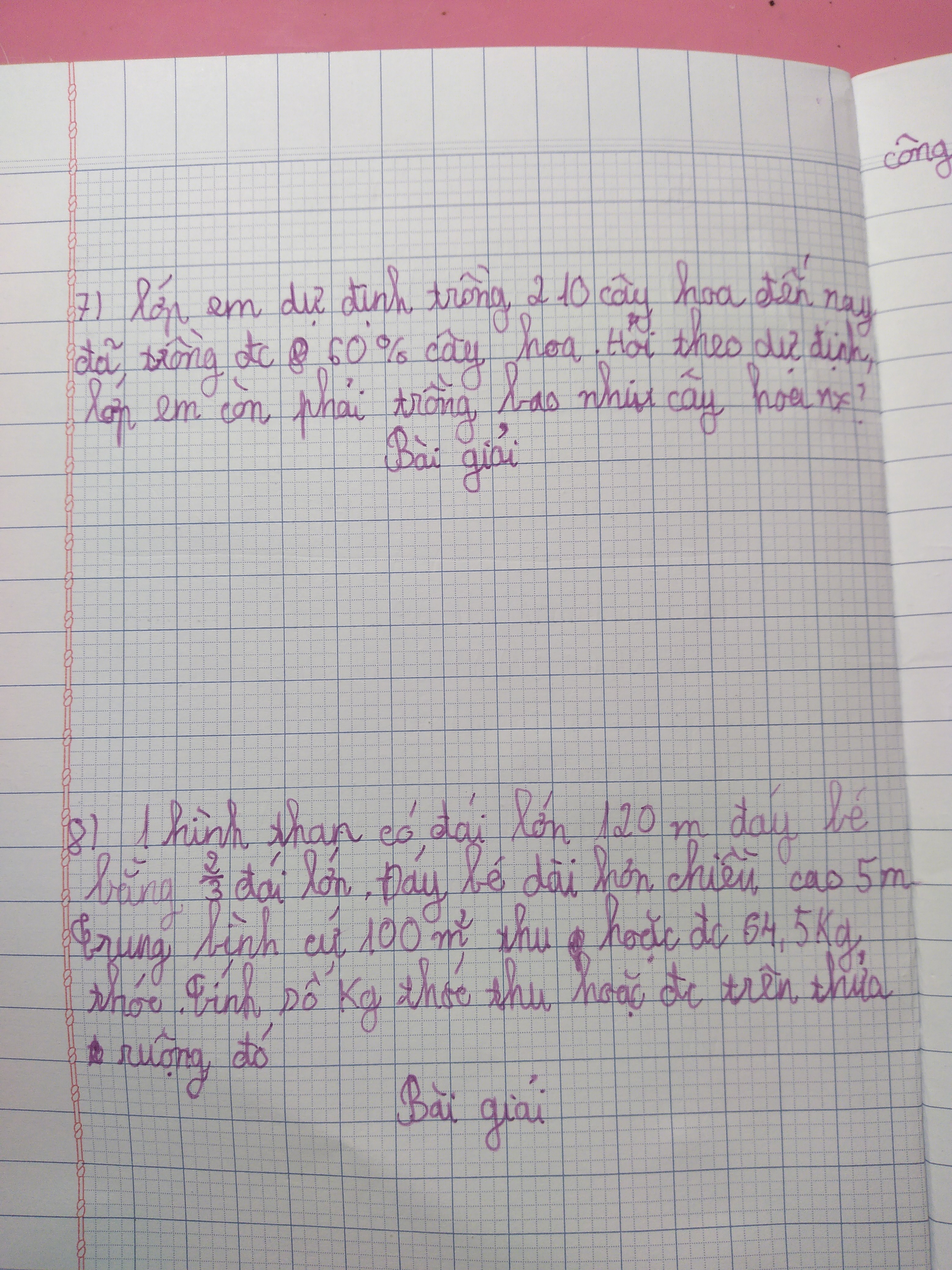 Lớp em dự định trồng 210 cây hoa đến nay đã trồng được 60% cây hoa