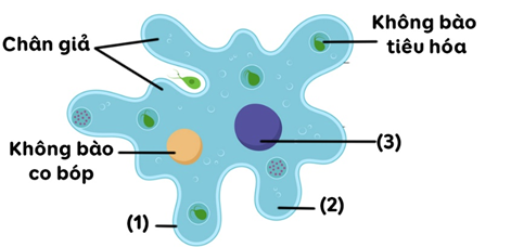 (3) Trùng biến hình thuộc nhóm tế bào động vật vì trong tế bào của trùng biến hình chưa có lục lạp nên không thể quang hợp.