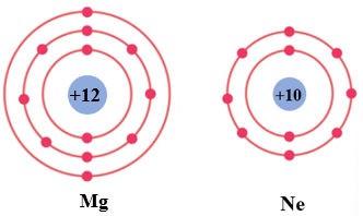Cho mô hình sắp xếp các electron trong vỏ nguyên tử Mg và nguyên tử Ne: