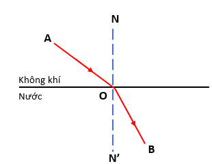 Khi chiếu một tia sáng AO từ không khí vào nước, tia khúc xạ nằm trong mặt phẳng chứa tia tới và pháp tuyến tại điểm tới.