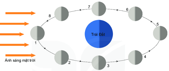 Hình dưới đây ghi lại hình dạng Mặt Trăng quan sát được trong các ngày của tháng Âm lịch. Hãy xác định hình ảnh dưới đây lần lượt ứng với khoảng ngày nào của tháng Âm lịch?