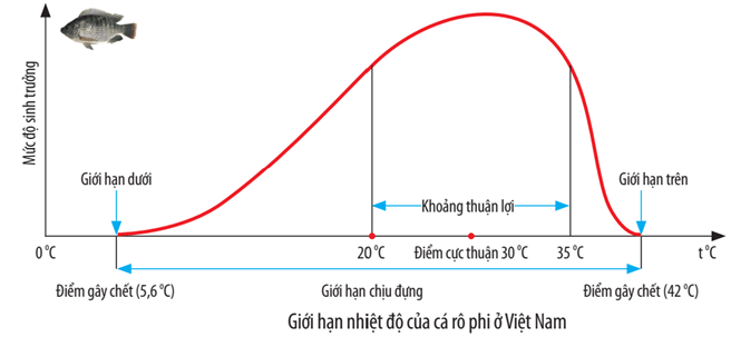 Khoảng giới hạn sinh thái về nhiệt độ đối với cá rô phi ở Việt Nam là: