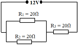 Có 3 điện trở giống nhau có giá trị bằng 20 W được mắc như sơ đồ. Công suất tiêu thụ của cả đoạn mạch là
